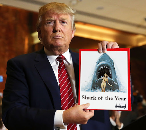 Throsby’s shutters went down, or shields went up, but not before he absorbed that POTARD Trump is allegedly terrified of, and detests, sharks. Trump hopes all the sharks die, according to the ultimate news source, Stormy Stephanie.
